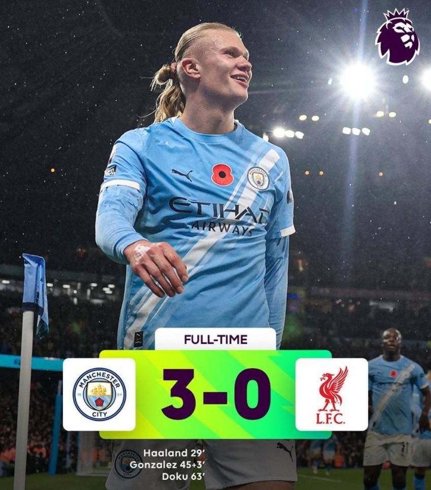 ในนาทีที่ 62 โอ'ไรลีย์เปิดบอลจากฝั่งซ้าย ดูกูรับบอลแล้วตัดเข้าใน ก่อนจะซัดไกลด้วยเท้าขวาเต็มข้อ บอลพุ่งเสียบตาข่ายแมนเชสเตอร์ ซิตี้อย่างเฉียบขาด แม้มาแมร์ดาชวิลีจะเห็นทางบอลแต่ด้วยความเร็วและความเฉียบคมของมุมยิง ทำให้เขาหมดสิทธิ์ป้องกันสกอร์สุดท้ายอยู่ที่ 3-0 แมนเชสเตอร์ ซิตี้ คว้าชัยชนะเหนือลิเวอร์พูลในบ้านตัวเอง ชัยชนะครั้งนี้ไม่เพียงแต่ทำให้ลิเวอร์พูลแพ้ติดต่อกันนอกบ้านเพิ่มขึ้น แต่ยังทำลายคำสาปที่ไม่สามารถเอาชนะลิเวอร์พูลในพรีเมียร์ลีกได้ตั้งแต่วันที่ 1 เมษายน 2023 อีกด้วย นอกจากนี้ ยังเป็นของขวัญที่สมบูรณ์แบบเพื่อเฉลิมฉลองการคุมทีมนัดที่ 1,000 ของเป๊ป กวาร์ดิโอลา