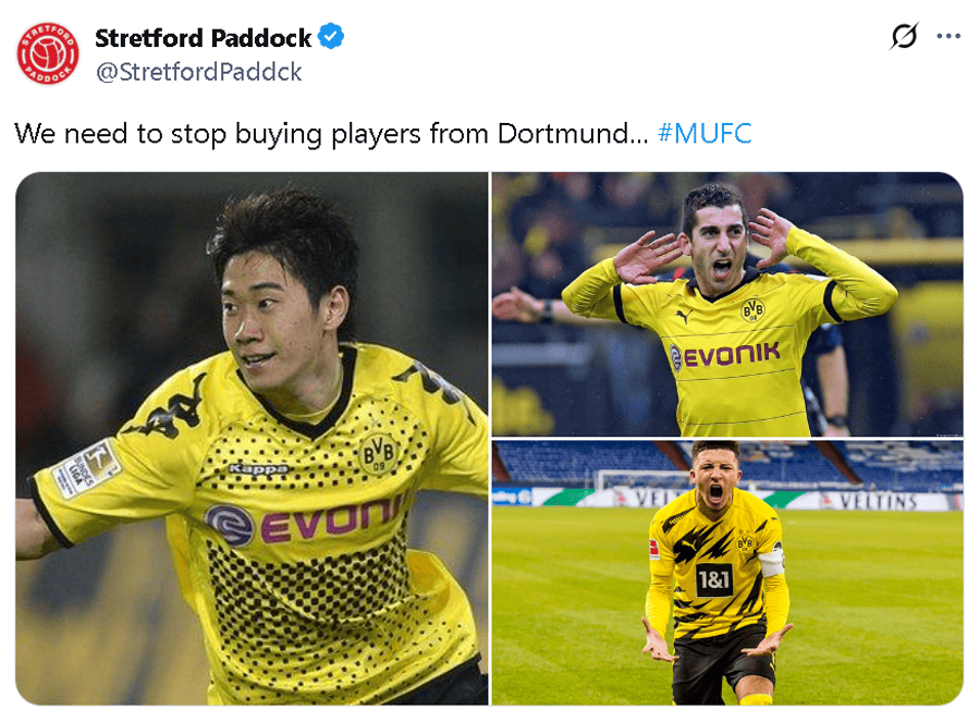 ยิ่งไปกว่านั้น ฟอร์มปัจจุบันของอาเดเยมี ประกอบกับประวัติการเซ็นสัญญากับโบรุสเซีย ดอร์ทมุนด์ของแมนเชสเตอร์ ยูไนเต็ด ยิ่งทำให้เหตุผลในการคว้าตัวเขาอ่อนลง ไม่ว่าจะเป็นซานโช่ หรือผู้เล่นที่มาก่อนหน้าอย่างมคิทาร์ยานและชินจิ คางาวะ ปีศาจแดงล้มเหลวอย่างต่อเนื่องในการหาสูตรที่เหมาะสมในการใช้งานนักเตะจากดอร์ทมุนด์