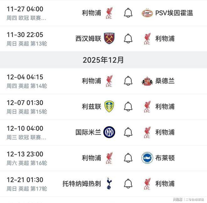 此外,萨拉赫的状态低迷,尽管如此,他仍占据首发并打满全场,令其他球员感到不满。连续的失利不仅让球员们士气低落、信心受损,也让主教练斯洛特陷入了舆论的风口浪尖。特别是在主场以0-3输给森林队后,关于斯洛特下课的呼声愈加高涨。不过,著名足球记者罗马诺透露,目前利物浦仍支持斯洛特,暂时并没有换帅的计划。但如果球队状态没有明显改善,俱乐部不排除在明年1月冬窗寻找一位临时救火教练。这意味着斯洛特只有一个月的时间来扭转局势。接下来的赛程对于利物浦来说并不算过于艰难,接下来8场比赛,除去欧冠对阵国米和英超对阵热刺外,其他对手的实力相对较弱。
