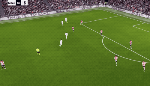 ในนาทีที่ 42 เรอัล มาดริด สร้างจังหวะการเล่นอันน่าตื่นตาตื่นใจด้วยการต่อบอลอย่างซับซ้อน อาร์โนลด์เปิดบอลจากเส้นหลัง เอ็มบัปเป้แตะต่อด้วยศีรษะ และกามาแว็งก้าโหม่งจ่อๆ เข้าประตูไป