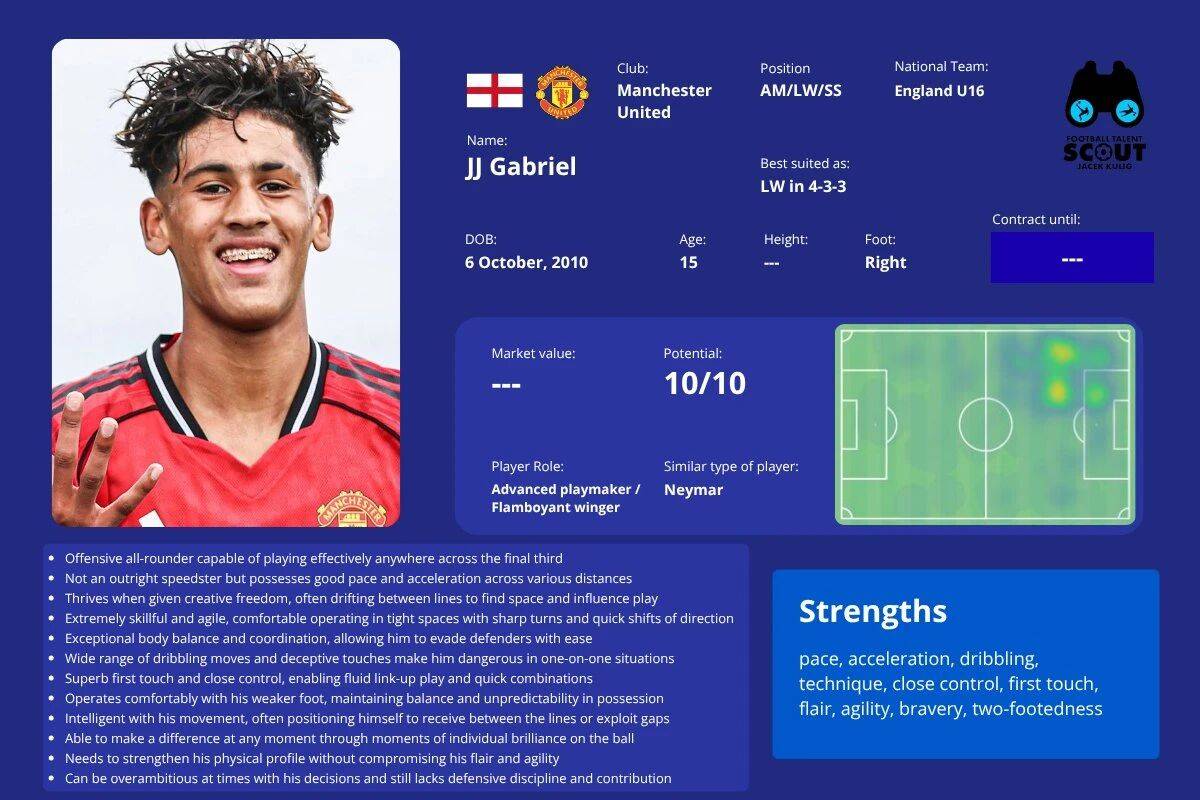 กาเบรียลกำลังจะกลายเป็นนักเตะอายุน้อยที่สุดที่ได้ลงเล่นในพรีเมียร์ลีกให้กับแมนเชสเตอร์ ยูไนเต็ด ในประวัติศาสตร์ของสโมสร สถิติปัจจุบันถูกถือครองโดยแองเจล กอมส์ (อายุ 16 ปี 263 วัน) โดยมีโชลา โชเรติเร (อายุ 17 ปี 19 วัน) และชิดโอะ ออบฮี (อายุ 17 ปี 79 วัน) อยู่ในอันดับสองและสามตามลำดับ