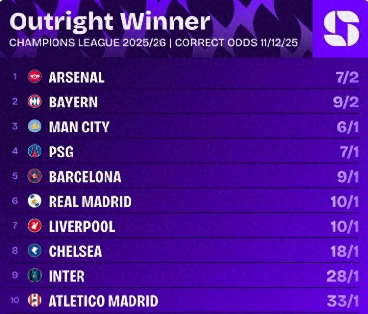 รอบแบ่งกลุ่มของยูฟ่าแชมเปียนส์ลีกฤดูกาลนี้ได้เสร็จสิ้นไปแล้วสามในสี่ของโปรแกรมการแข่งขัน ซึ่งประกอบด้วยหกแมตช์เดย์ หน่วยงานที่เกี่ยวข้องได้เปิดเผยอัตราต่อรองล่าสุดสำหรับสโมสรที่เข้าร่วมแข่งขัน ขณะนี้ อาร์เซนอลซึ่งเป็นจ่าฝูงของกลุ่มเป็นผู้นำในตารางอันดับ ตามมาด้วยบาเยิร์น มิวนิคในอันดับสอง และแมนเชสเตอร์ ซิตี้ในอันดับสาม ส่วนเรอัล มาดริดอยู่ในอันดับที่หกอย่างน่าประหลาดใจ โดยเสมอกับลิเวอร์พูล
