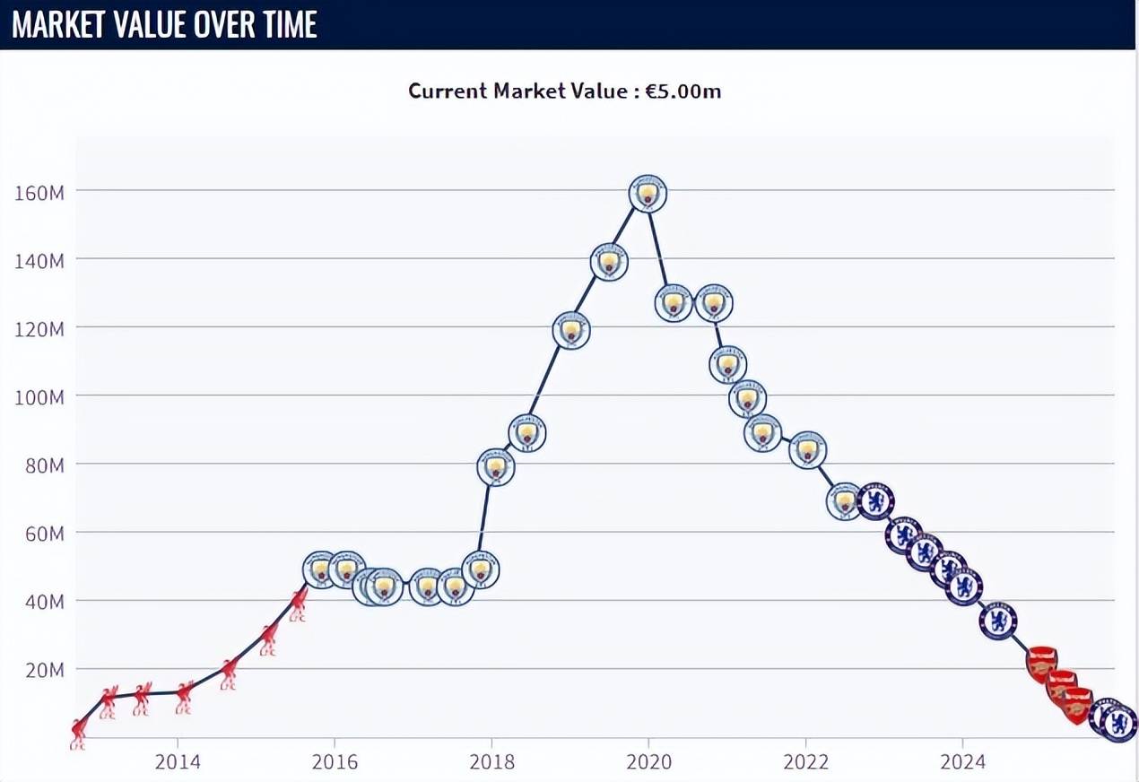 ฟอร์มการเล่นที่ย่ำแย่ลงของสเตอร์ลิงในช่วงที่ผ่านมา ส่งผลให้มูลค่าตลาดของเขาดิ่งลงอย่างรวดเร็ว ตามข้อมูลล่าสุดจากเว็บไซต์ประเมินมูลค่าการย้ายทีมที่น่าเชื่อถืออย่าง Transfermarkt มูลค่าปัจจุบันของเขาลดลงเหลือเพียง 5 ล้านยูโรควรสังเกตว่าในช่วงที่รุ่งเรืองที่สุด สเตอร์ลิงมีมูลค่าประเมินสูงถึง 160 ล้านยูโร ซึ่งจัดอยู่ในกลุ่มนักกีฬาชั้นนำของวงการ ในเวลานั้น มีเพียง คีเลียน เอ็มบัปเป้ และ เนย์มาร์ เท่านั้นที่มีมูลค่าสูงกว่าเขาในวงการฟุตบอลโลก อย่างไรก็ตาม ในช่วงเวลาเพียงหกปี มูลค่าตลาดของเขาได้ลดลงอย่างน่าตกใจถึง 32 เท่า จากที่เคยเป็นดาวเด่นที่ทุกสโมสรต้องการ ตอนนี้เขากลายเป็นนักเตะไร้สังกัดที่ถูกทอดทิ้ง