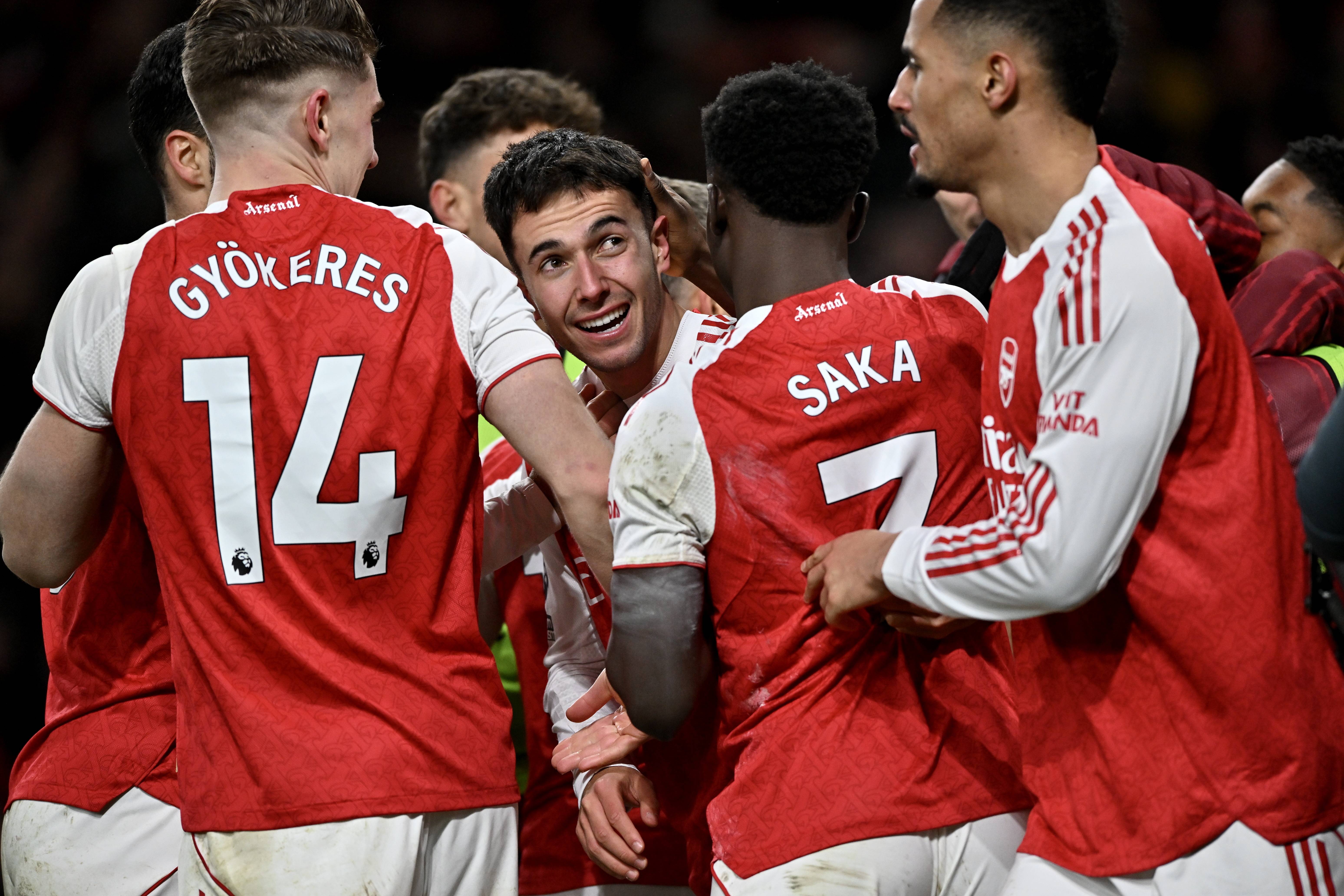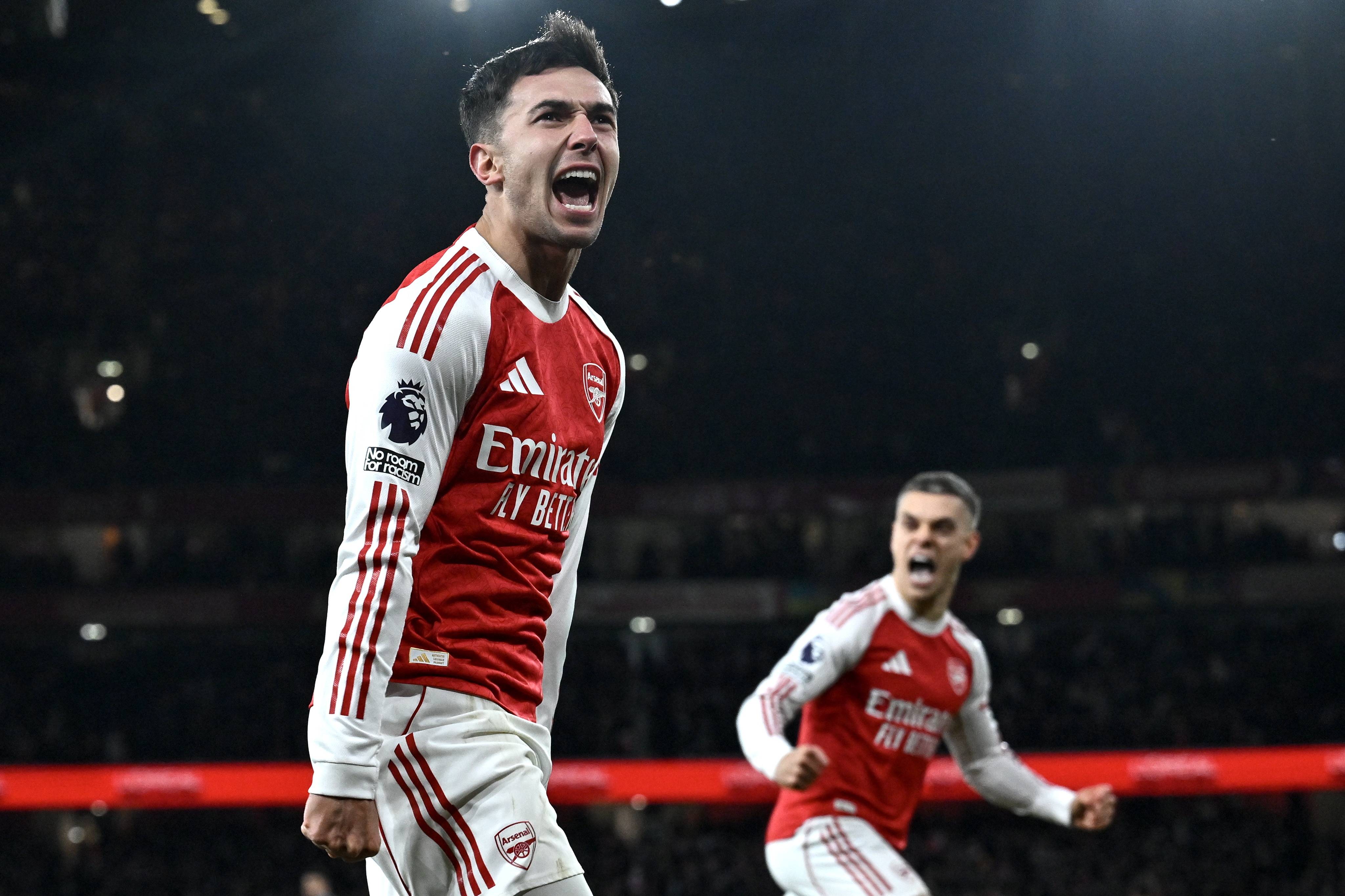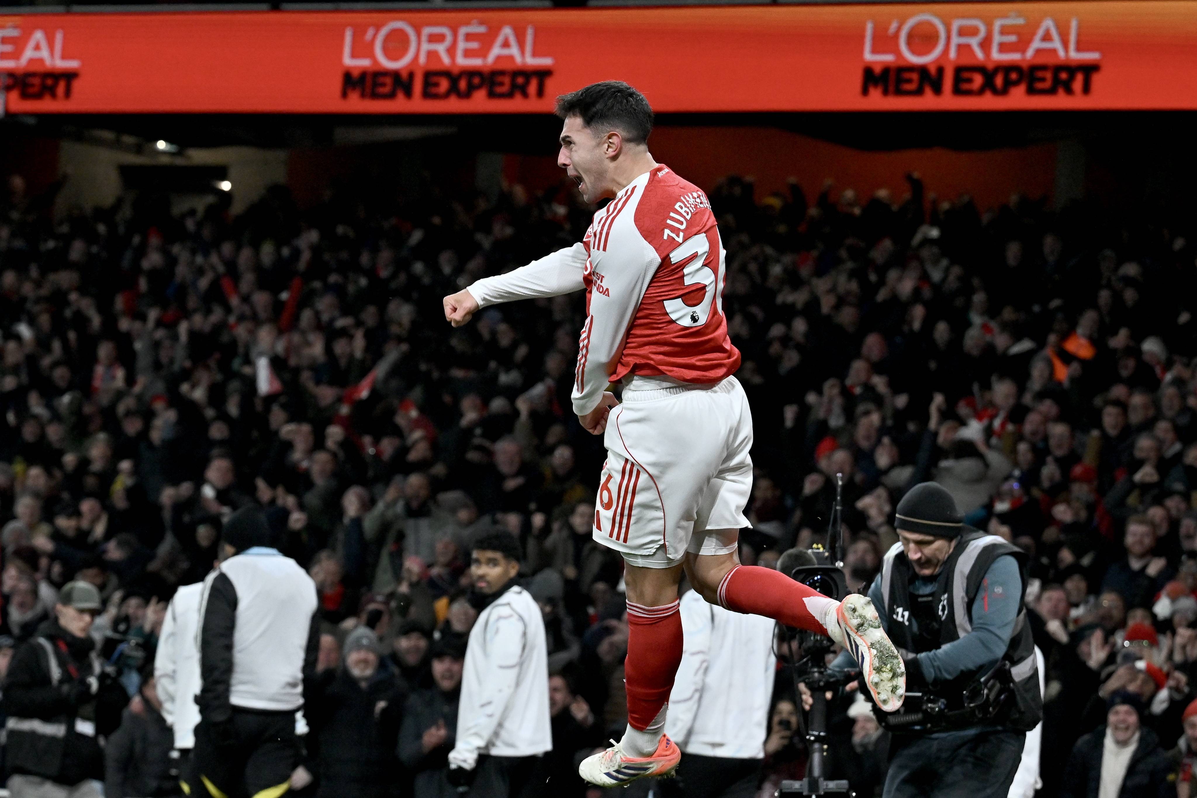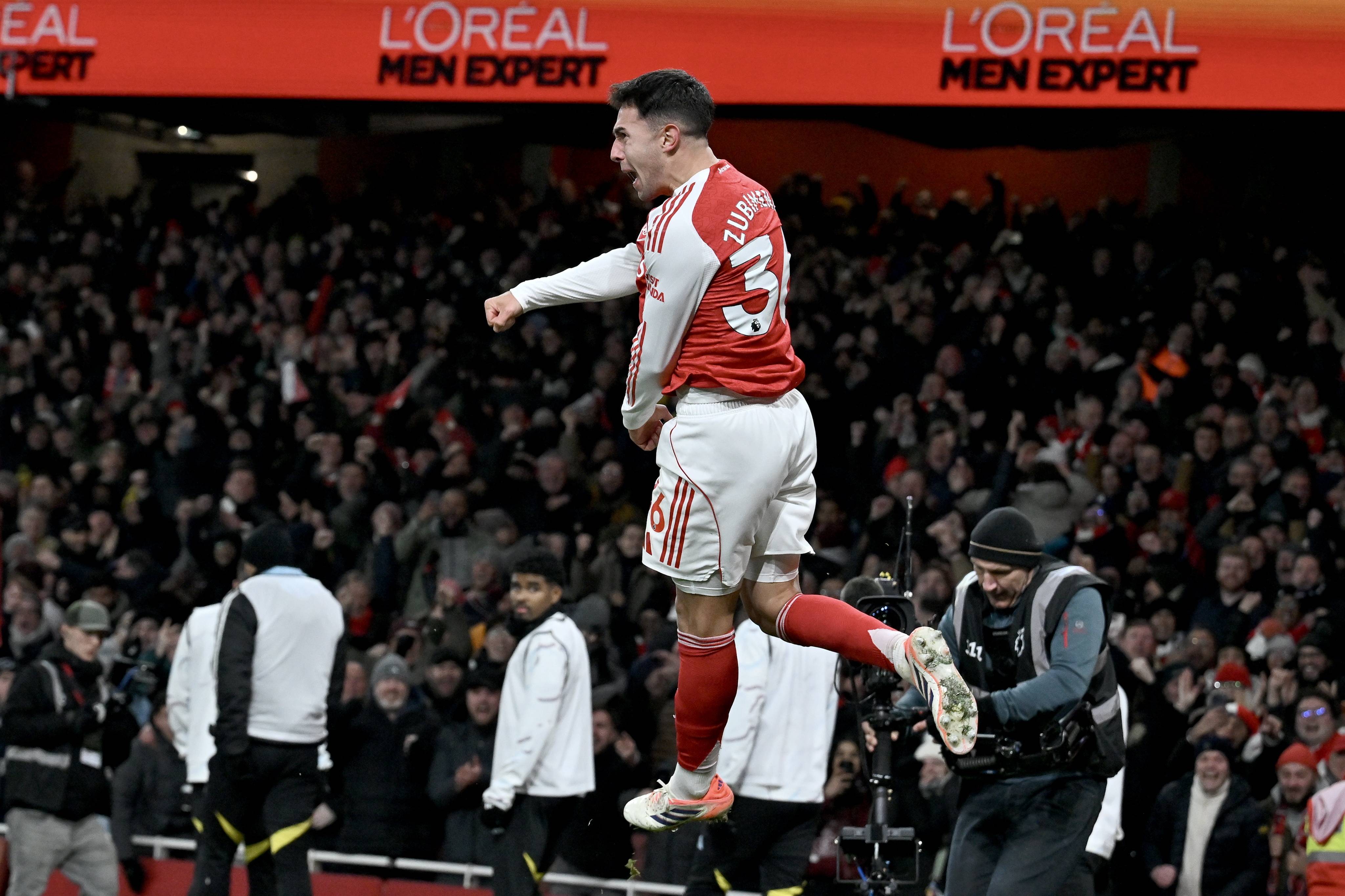 เมื่อวันที่ 30 ธันวาคม, นักเตะอาร์เซนอล มิเกล อาร์เตตา (ซ้าย) ฉลองการทำประตูที่สองของทีม. ซีเอ็นเอ็น/อีพีเอ
