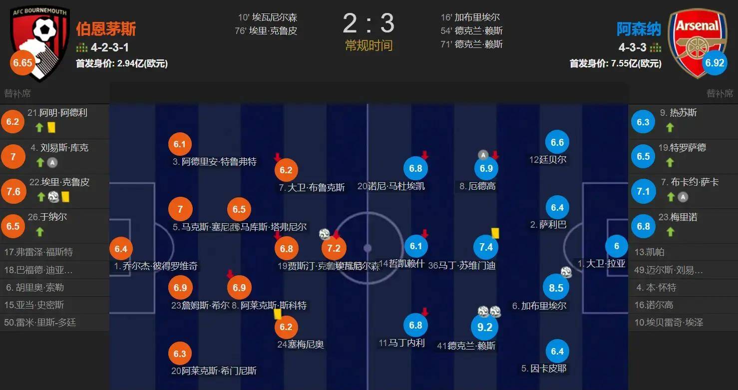 เวลา 01:30 น. ตามเวลาปักกิ่ง วันที่ 4 มกราคม การแข่งขันพรีเมียร์ลีกนัดที่ 20 มีคู่ที่น่าสนใจเมื่ออาร์เซนอลเดินทางไปพบกับบอร์นมัธ การแข่งขันครั้งนี้เต็มไปด้วยความตื่นเต้นและดราม่าอย่างมาก ทำให้ผู้ชมไม่สามารถต้านทานการปรบมือให้กับผลงานของนักเตะในสนามได้
