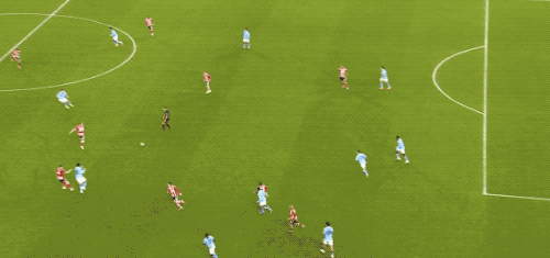 ในนาทีที่ 49 แมนเชสเตอร์ ซิตี้ ทำการผ่านบอลแบบหนึ่งสัมผัสต่อเนื่องในแดนหน้า เซเมโญ่เป็นผู้จ่ายบอลให้ และลูอิสยิงเข้าประตูจากระยะใกล้