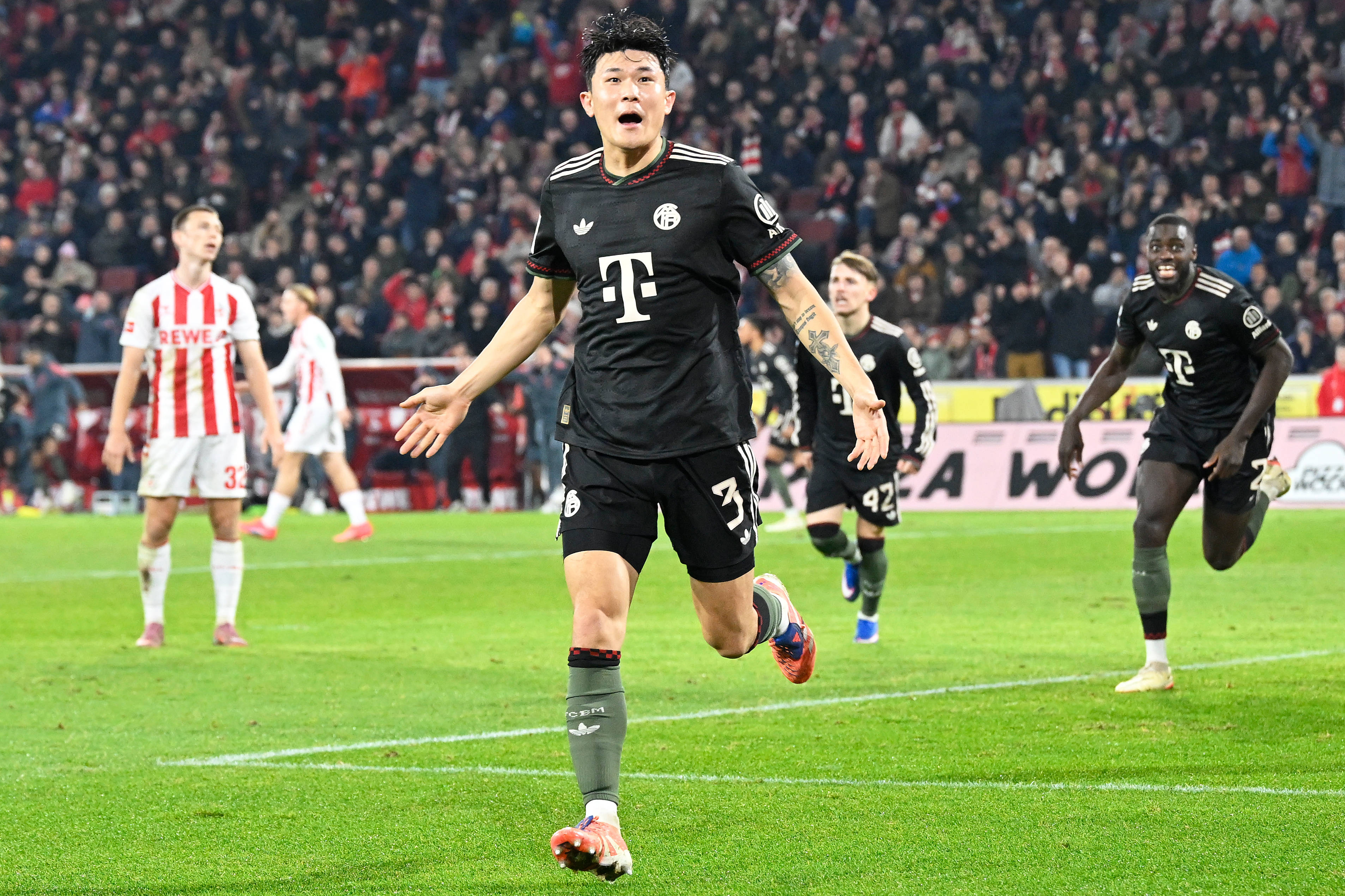 เมื่อวันที่ 14 มกราคม คิม มิน-แจ (ด้านหน้า) นักเตะของบาเยิร์น มิวนิค ฉลองการทำประตูระหว่างการแข่งขัน สำนักข่าวซินหัว (ภาพถ่ายโดย Ulrich Hufnagel)