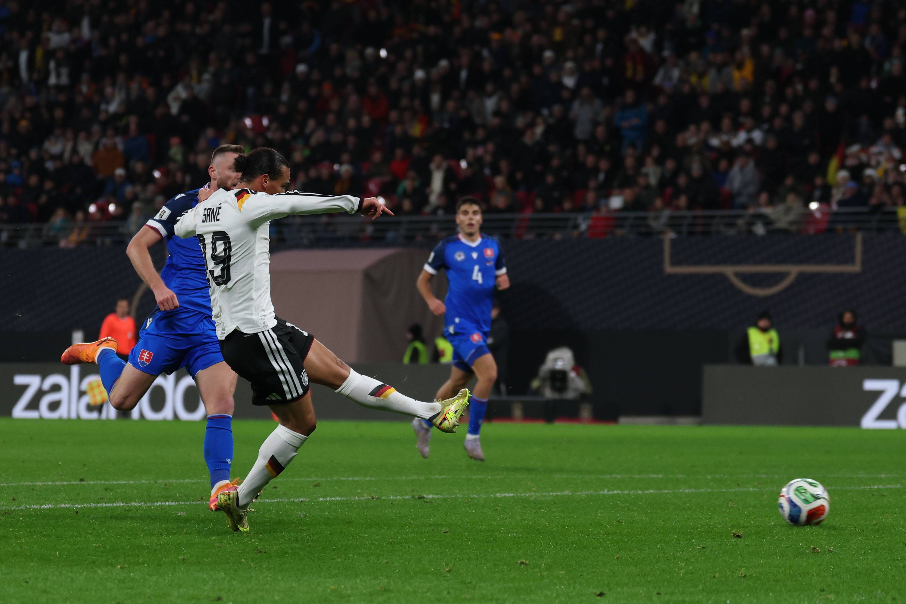 เมื่อวันที่ 17 พฤศจิกายน, เลรอย ซาเน่ ของเยอรมนี ฉลองการทำประตูที่สามของทีม. ซีนา/อีพีเอ