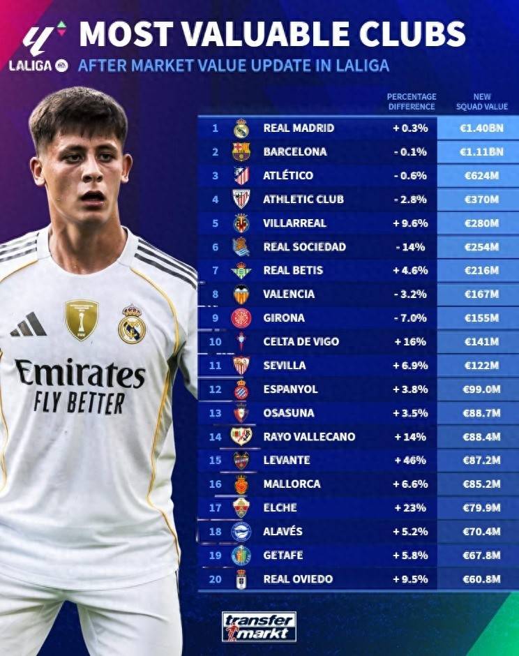 ทีมของโบรุสเซีย ดอร์ทมุนด์ มีมูลค่าอยู่ที่ 500 ล้านยูโร ขณะที่ทีมเยือนมีมูลค่าเพียงครึ่งหนึ่งของจำนวนนี้เท่านั้น ตามการอัปเดตของทรานสเฟอร์มาร์คต์ล่าสุด ซึ่งได้ปรับปรุงมูลค่าผู้เล่นในลาลีกา และรวบรวมมูลค่าทีมปัจจุบันของสโมสรในลาลีกาไว้แล้ว วิลลาร์เรอัล มีมูลค่าอยู่ที่ 280 ล้านยูโร อยู่ในอันดับที่ห้าของลาลีกา