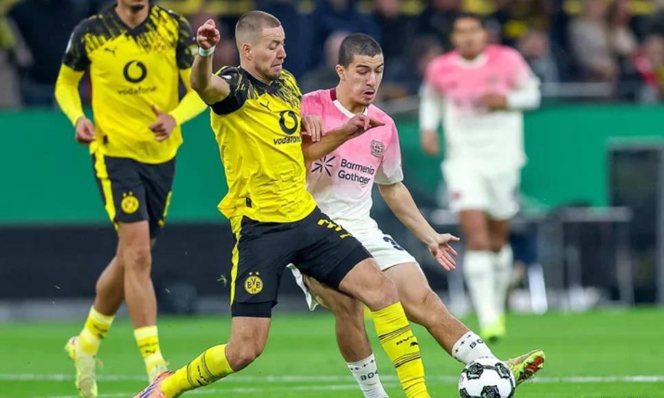 ในฐานะสองทีมเต็งของทัวร์นาเมนต์ โบรุสเซีย ดอร์ทมุนด์ และ ไบเออร์ เลเวอร์คูเซ่น ได้ปะทะกันในรอบ 16 ทีมสุดท้ายของศึกเดเอฟเบ โพคาล ทั้งสองทีมต่างทำผลงานโดดเด่นในบุนเดสลีกาฤดูกาลนี้ โดยมีความแข็งแกร่งที่ใกล้เคียงกัน ดอร์ทมุนด์ใช้ความได้เปรียบจากการเล่นในบ้านเปิดเกมรุกอย่างไม่หยุดยั้ง แต่การจบสกอร์กลับขาดประสิทธิภาพอย่างน่าเสียดาย ครึ่งแรกพวกเขาได้ยิงถึงเก้าครั้งแต่ไม่ตรงกรอบเลยแม้แต่ครั้งเดียว อีกทั้งยังพลาดโอกาสทองและเตะมุมถึงหกครั้ง ในทางตรงกันข้าม เลเวอร์คูเซ่นแสดงให้เห็นถึงประสิทธิภาพที่น่าทึ่งในนาทีที่ 34 เลเวอร์คูเซ่นทำลายความเงียบด้วยการโจมตีสวนกลับอย่างไหลลื่น โดยกริมัลโดเป็นผู้จ่ายบอลให้มาซซ่าทำประตูแรกของเกม ครึ่งหลังทั้งสองทีมต่างแลกเปลี่ยนการโจมตีแต่ไม่สามารถทำประตูได้ ทำให้เลเวอร์คูเซ่นชนะไป 1-0 เหนือดอร์ทมุนด์ และผ่านเข้าสู่รอบก่อนรองชนะเลิศได้สำเร็จ แคมเปญในถ้วยของดอร์ทมุนด์จบลงที่นี่ ทำให้แฟนบอลรู้สึกผิดหวังอย่างมาก