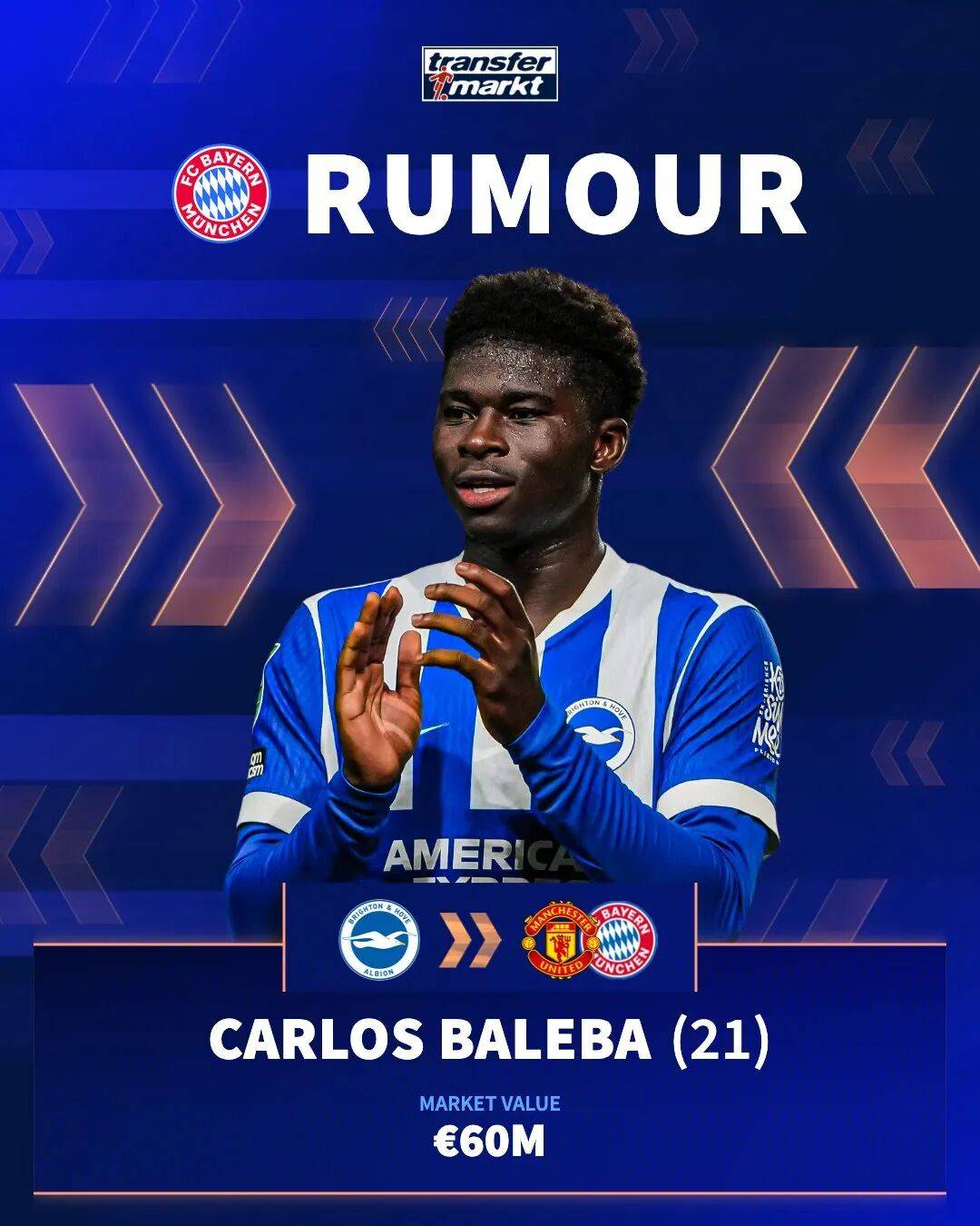ในช่วงตลาดซื้อขายนักเตะฤดูร้อนที่ผ่านมา แมนเชสเตอร์ ยูไนเต็ด ได้บรรลุข้อตกลงส่วนตัวกับ เบลบา นักเตะทีมชาติแคเมอรูนวัย 21 ปี แม้ว่าไบรท์ตันจะตั้งราคาไว้ที่ 120 ล้านปอนด์ก็ตาม คาดการณ์กันอย่างกว้างขวางว่าค่าตัวในการย้ายทีมของเบลบาจะเกิน 100 ล้านปอนด์ แต่ฟอร์มการเล่นของเขาตกลงอย่างมากในฤดูกาลนี้ ทำให้ค่าตัวในการย้ายทีมของเขาคาดว่าจะลดลงอย่างมาก
