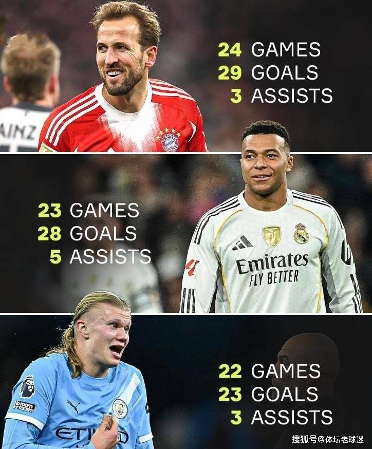 ในฐานะกองหน้าชั้นนำของโลกสามคน ฮาแลนด์, เอ็มบัปเป้ และเคน ยังคงทำผลงานได้อย่างยอดเยี่ยมในฤดูกาลนี้ จนถึงปัจจุบัน ค่าเฉลี่ยประตูต่อเกมของพวกเขายังคงสูงกว่าหนึ่งอย่างไม่ต้องสงสัย