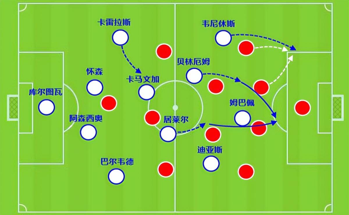 พูดตรงๆ ก็คือ การมีส่วนร่วมในการป้องกันที่ขาดความกระตือรือร้นของเอ็มบัปเป้ได้บังคับให้วินิซิอุสต้องใช้พลังงานทางจิตใจมากขึ้นในการรักษาสมดุลระหว่างการโจมตีและการป้องกันหลังจากลงเล่นครบ 90 นาทีเต็ม 9.6 นัดในฤดูกาลนี้ วินิซิอุสได้ทำการเข้าสกัดและตัดบอลไปแล้ว 16 ครั้ง โดยมักถูกใช้งานเป็นกำลังหลัก