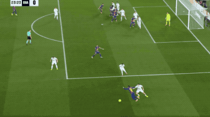 สองนาทีต่อมา บาร์เซโลนาทำซ้ำการเคลื่อนไหวเดิม โดยการ์เซียปล่อยลูกยิงไกล บอลแทบไม่มีสปินเลย โค้งลงเล็กน้อยก่อนจะโค้งออกข้างไปอย่างเฉียดฉิว