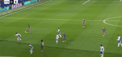 ในนาทีที่ 28 ยามาลได้รับบอลจากเอริค การ์เซีย ก่อนจะโชว์ลีลาหมุนตัวแบบมาร์กเซยเลียน หลบกองหลังไปอย่างเหนือชั้น แต่จังหวะยิงหรือเปิดบอลต่อของเขาหลังจากนั้นกลับไม่ตรงกรอบ
