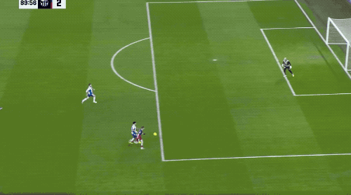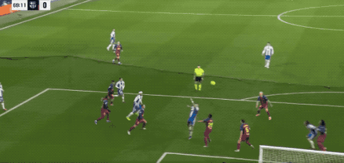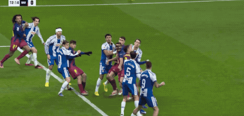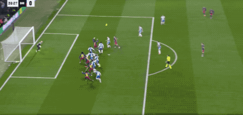 ในนาทีที่ 37 บาร์เซโลนาได้รับลูกฟรีคิกในแดนรุก ราฟินญ่าเปิดบอลเข้าไป แต่เฟร์ราน ตอร์เรสวิ่งเร็วเกินไปและต้องยืดตัวไปด้านหลังเพื่อโหม่งบอล ซึ่งบอลลอยออกไปข้างกรอบประตู