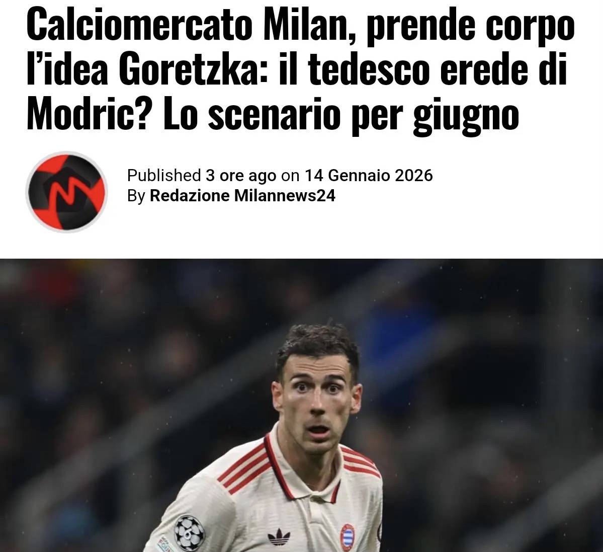 การต่อสัญญาหรือการพักเบรก: หากลูก้า โมดริชตัดสินใจไม่ขยายสัญญา (โดยมีข่าวลือว่าเขาอาจพักหนึ่งปีก่อนกลับมาที่เรอัล มาดริดในตำแหน่งผู้จัดการทีม) มิลานจะเดินหน้าเต็มที่ในการคว้าตัวเลออน โกเร็ตซ์ก้า โดยวางตำแหน่งเขาเป็น 'วาทยกร' คนใหม่ของทีมในแดนกลาง