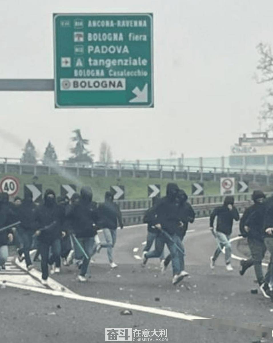 "การปะทะบนทางหลวง" ผู้สนับสนุนชาวโรมาและฟิออเรนตินาประมาณ 200 คนเข้าร่วมการปะทะด้วยอาวุธบนทางหลวง _โบโลญญา_ _ความขัดแย้ง_ _อิตาลี_