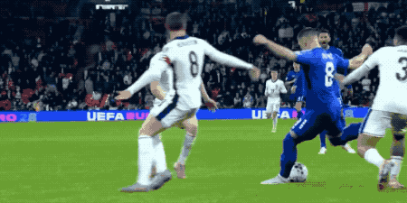 ในนาทีที่ 28 อังกฤษได้ลูกฟรีคิกในแดนรุก ราอิคอวิชชกบอลออกไปได้ แต่บอลไม่ไปไกลนัก โอ'ไรลีย์ยิงแต่ถูกบล็อก ซากาจึงวอลเลย์ซ้ำเข้าไปตุงตาข่าย