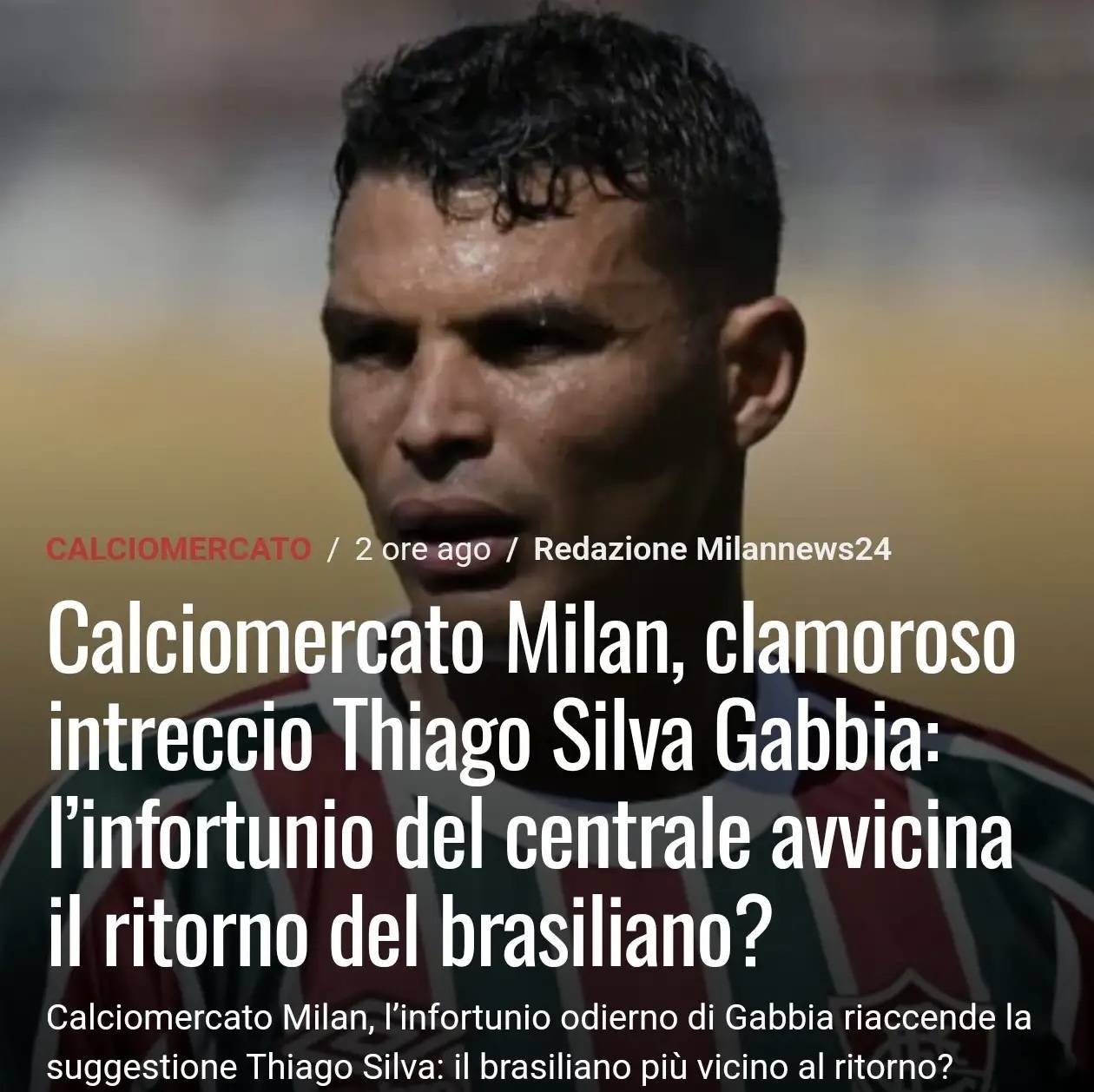 สื่ออิตาลีรายงานว่าอาการบาดเจ็บของ กาเบียดีนี อาจทำให้มิลานเร่งการไล่ล่าตัวนักเตะมากประสบการณ์อย่าง ติอาโก้ ซิลวา อัลเลกรี แนวรับ ตลาดซื้อขายนักเตะ