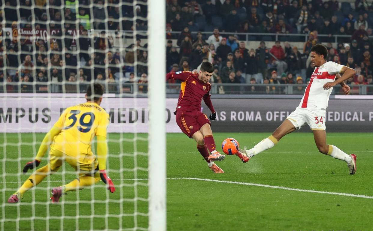 ในช่วงเช้าตรู่ของวันที่ 30 ธันวาคม ตามเวลาปักกิ่ง การแข่งขันรอบที่ 17 ของฤดูกาล 2025-2026 ของเซเรีย อา ได้มีการพบกันที่สำคัญเมื่อโรม่าเอาชนะเจนัวในบ้านไปได้ 3-1 ผลการแข่งขันนี้ทำให้พวกเขาหลุดพ้นจากช่วงแพ้รวดและยึดตำแหน่งที่สี่ในตารางลีกไว้ได้การแข่งขันเริ่มต้นอย่างตื่นเต้นตั้งแต่ต้น ในนาทีที่ 13 การสกัดบอลกลางสนามของโรม่าสร้างความโกลาหลในกรอบเขตโทษ การพยายามเคลียร์บอลด้วยศีรษะของบาสเกซกลับกลายเป็นแอสซิสต์ทำเข้าประตูตัวเอง ทำให้ซูลีสามารถตอบสนองได้อย่างรวดเร็วและยิงเข้าประตูจากมุมแคบ ส่งผลให้จัลโลรอสซีขึ้นนำเพียงหนึ่งนาทีต่อมา ในนาทีที่ 18 ดิบาล่าเริ่มการโต้กลับอย่างรวดเร็ว เฟอร์กูสันส่งบอลทะลุช่องอย่างแม่นยำ และโคเน่ยิงเข้าไปอย่างใจเย็นท่ามกลางความวุ่นวายเพื่อเพิ่มสกอร์นำเป็น 2-0ในนาทีที่ 30 การกดดันสูงของโรม่าได้ผลสำเร็จบริเวณนอกกรอบเขตโทษ ซูเล่ยิงไปติดเซฟของผู้รักษาประตูโซมาลิวา แต่เฟอร์กูสันฉวยโอกาสซ้ำลูกบอลที่กระดอนกลับมาทำประตูขึ้นนำ 3-0 ในครึ่งแรก