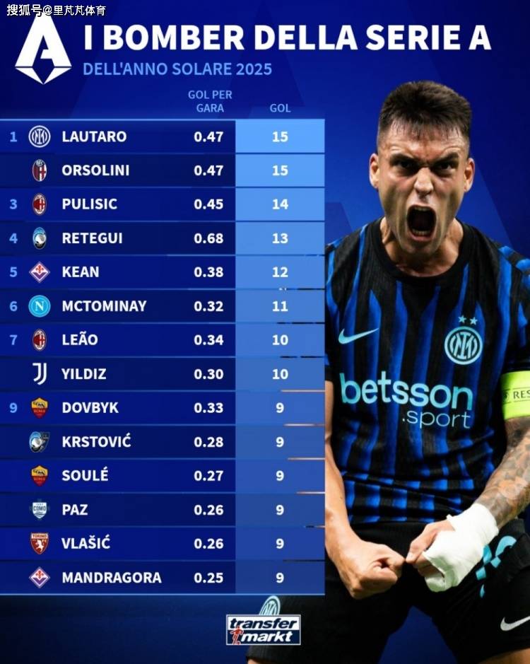 Transfermarkt ระบุว่า Lautaro และ Orsolini เป็นผู้ทำประตูสูงสุดร่วมในเซเรียอาสำหรับปี 2025 ด้วยจำนวน 15 ประตูเท่ากัน