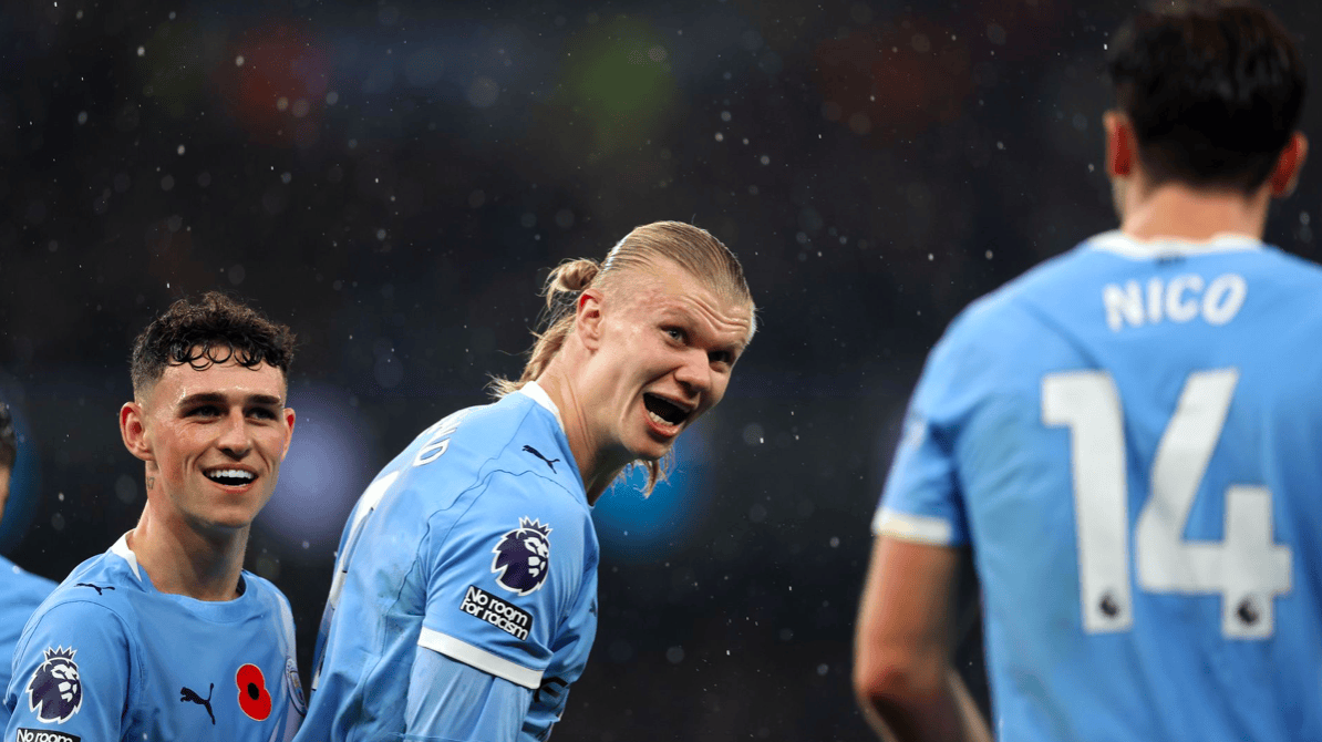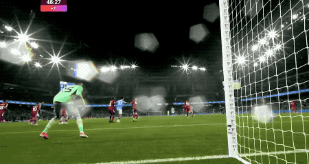 ในนาทีที่ 29 นูเนสเปิดบอลจากริมเส้น โกนาเต้โหม่งพลาด ทำให้บอลกระดอนจากศีรษะของฮาแลนด์ บอลโค้งเข้าประตูไปอย่างสวยงาม