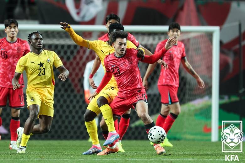 เมื่อวันศุกร์ที่ผ่านมา ที่สนามกีฬาสเตเดียมเวิลด์คัพแดจอน ประเทศเกาหลีใต้ ผู้จัดการทีม ฮง มยอง-โบ ได้ใช้ระบบการเล่น 4-2-3-1 ซึ่งกลายเป็นหายนะอย่างร้ายแรง หากไม่ใช่เพราะการโชว์ฟอร์มอย่างยอดเยี่ยมของ ซน ฮึง-มิน และ โช กู-ซอง ทีมอาจต้องเสียหน้าอย่างหนักใน 'การแสดงที่แดจอน'ครั้งนี้ที่กรุงโซล ฮง มยอง-โบ เลือกที่จะปรับเปลี่ยนกลยุทธ์ครั้งใหญ่อีกครั้ง เป็นอีกครั้งที่ความพยายามในครึ่งหลังของผู้เล่นดาวเด่นช่วยกอบกู้สถานการณ์ของเขา! ที่สนามฟุตบอลโลกกรุงโซล เกาหลีใต้เอาชนะกานาไปอย่างหวุดหวิด 1-0 ปิดท้ายเดือนพฤศจิกายนด้วยชัยชนะติดต่อกัน อย่างไรก็ตาม ผลงานยังคงมีข้อบกพร่องหลายประการ