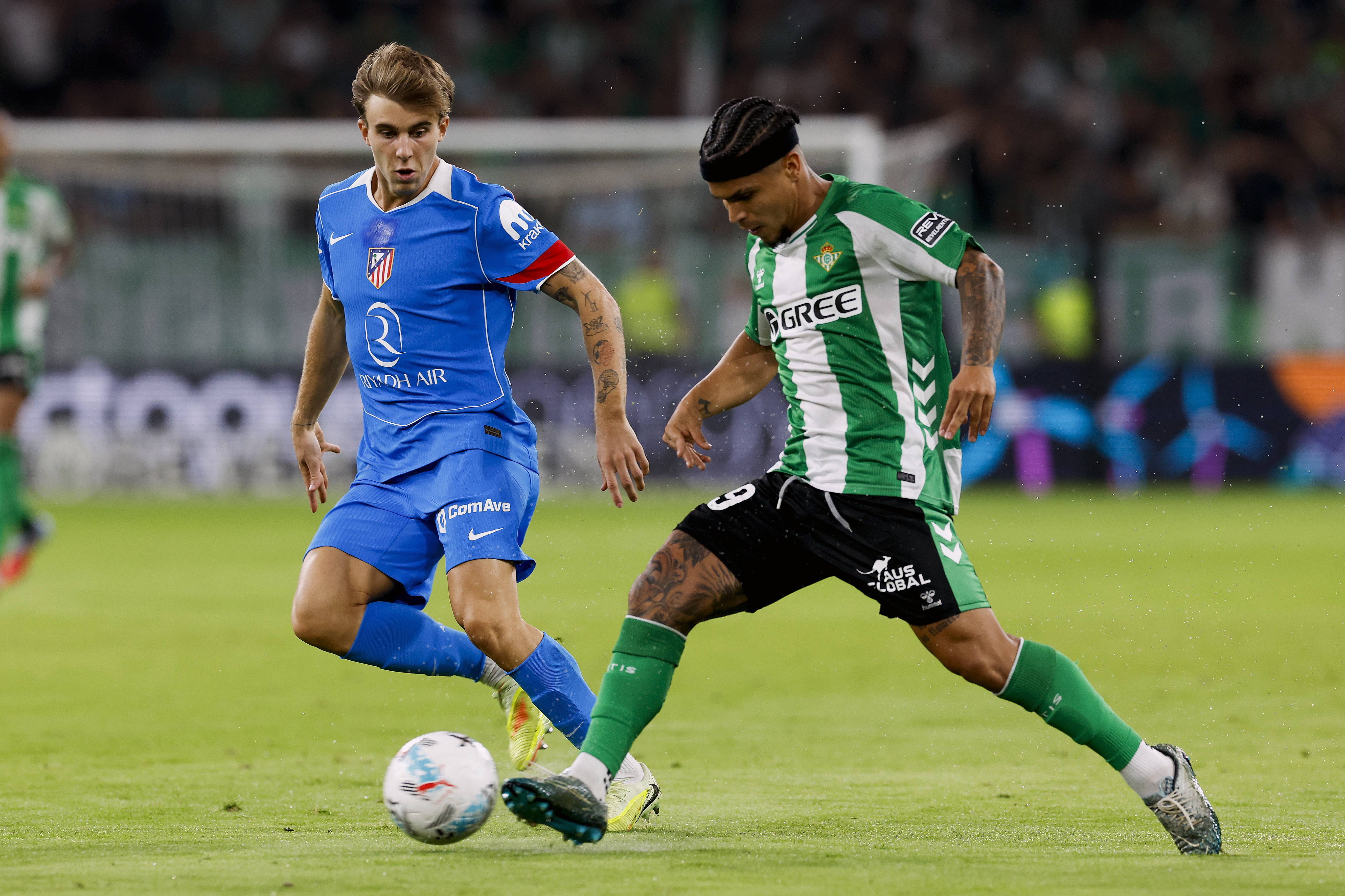 เมื่อวันที่ 27 ตุลาคม โจเซ่ กิเมเนซ ของแอตเลติโก มาดริด (ขวา) เข้าปะทะกับแอนโธนี ของเรอัล เบติส เพื่อแย่งบอล. ซีนา/อีพีเอ