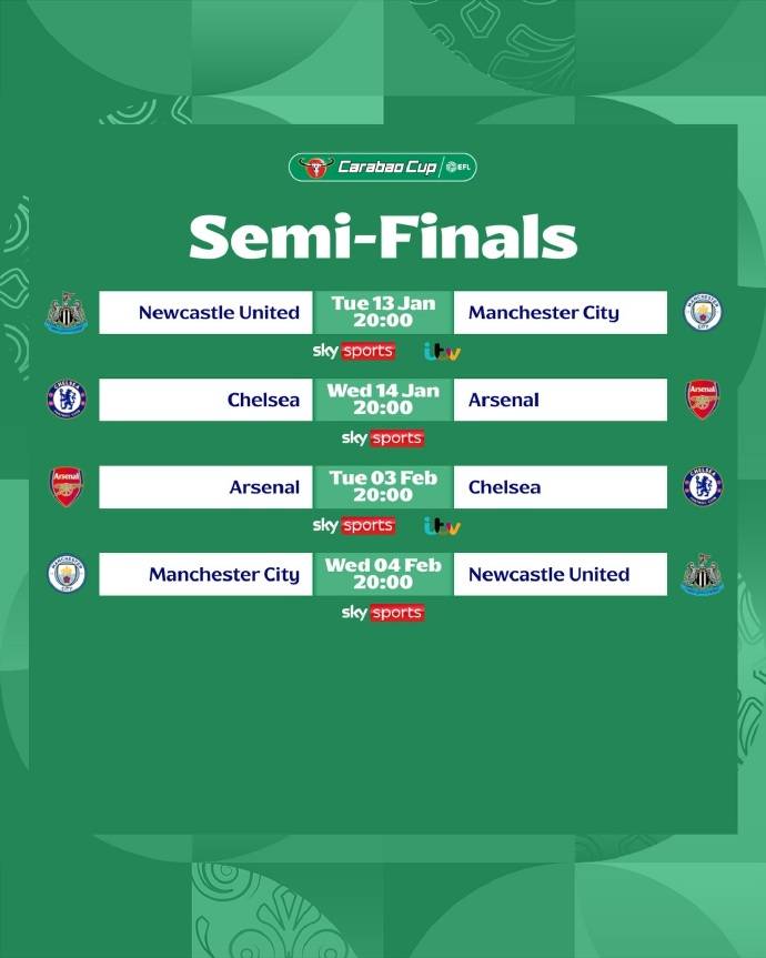 การแข่งขันรอบรองชนะเลิศลีกคัพ: นิวคาสเซิล ยูไนเต็ด พบ แมนเชสเตอร์ ซิตี้, เชลซี พบ อาร์เซนอล